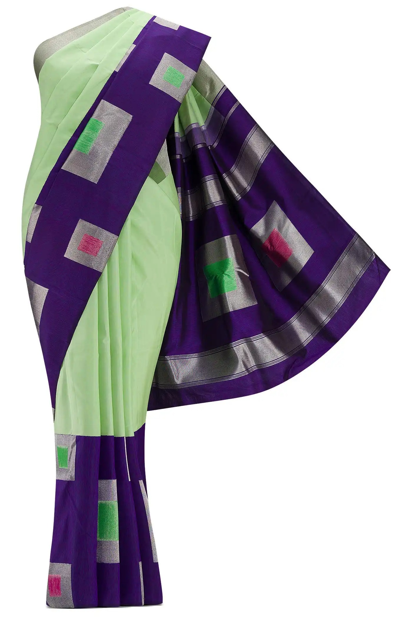 Sea Green Dual Tone Kanchipuram Silk Saree with Plain Body and Fancy Border. Includes unstitched blouse.