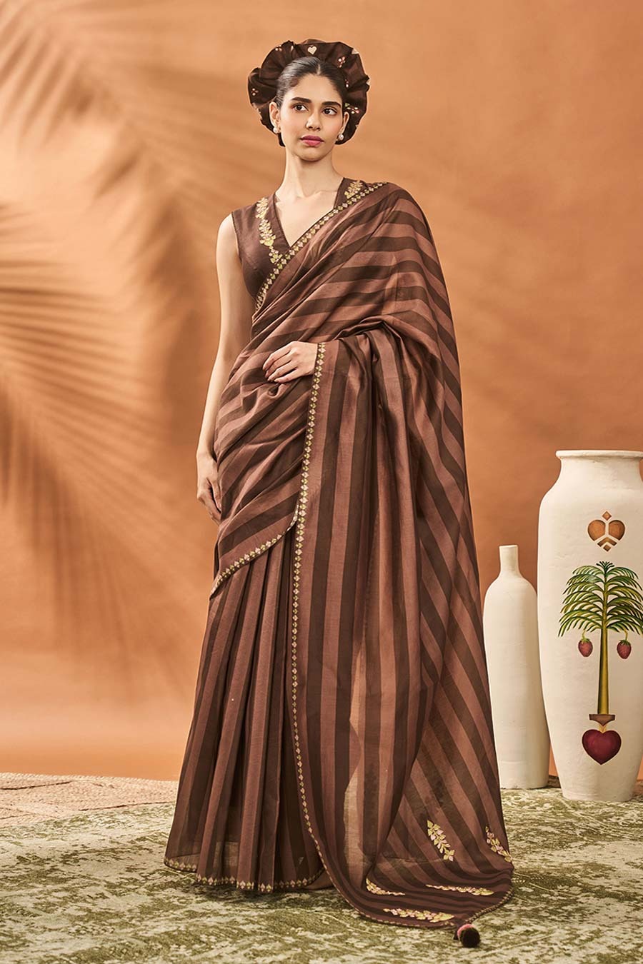 Brown Mocha Mosaic Saree With Blouse
