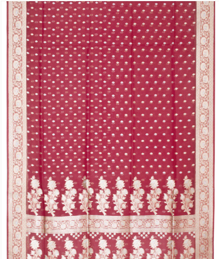 Cherry Red Handloom Banarasi Kora Silk