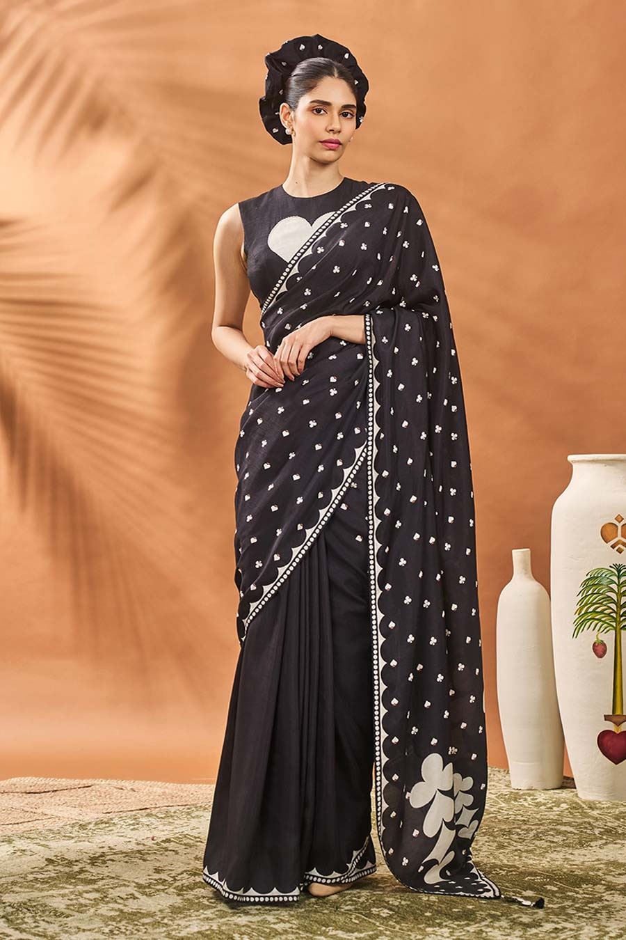 • Comes with blouse piece adorned with white heart applique embroidery