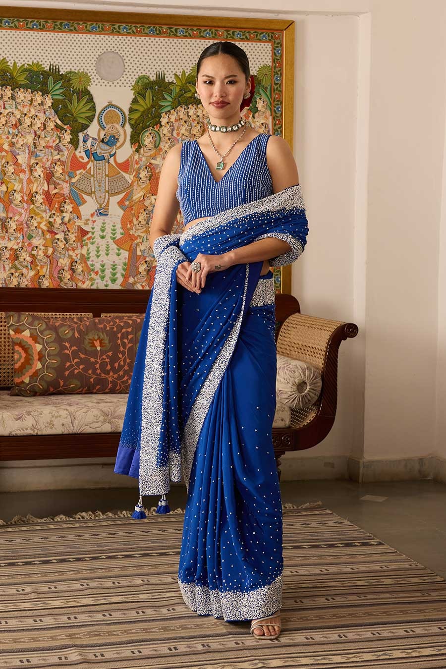 • Adorned with sequins embroidered border