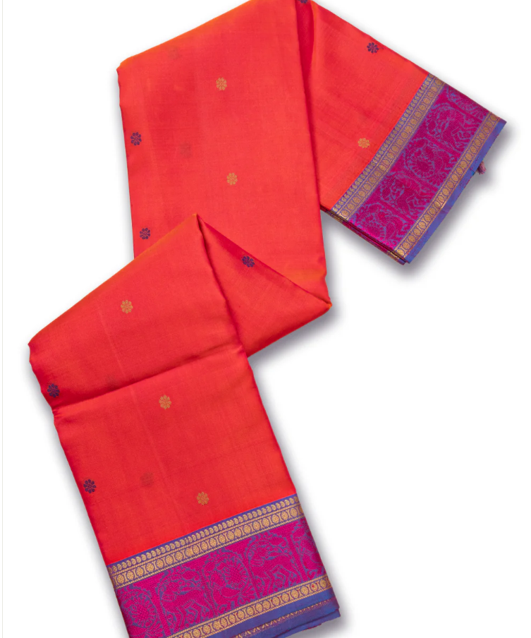 Red Handloom Threadwork Kanjivaram