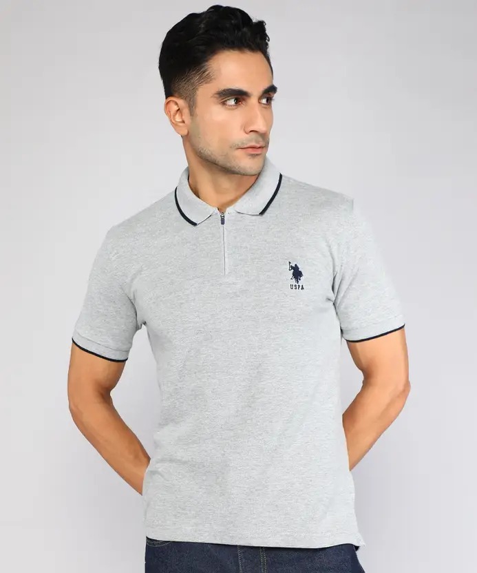 Men Solid Polo Neck Pure Cotton Grey T-Shirt