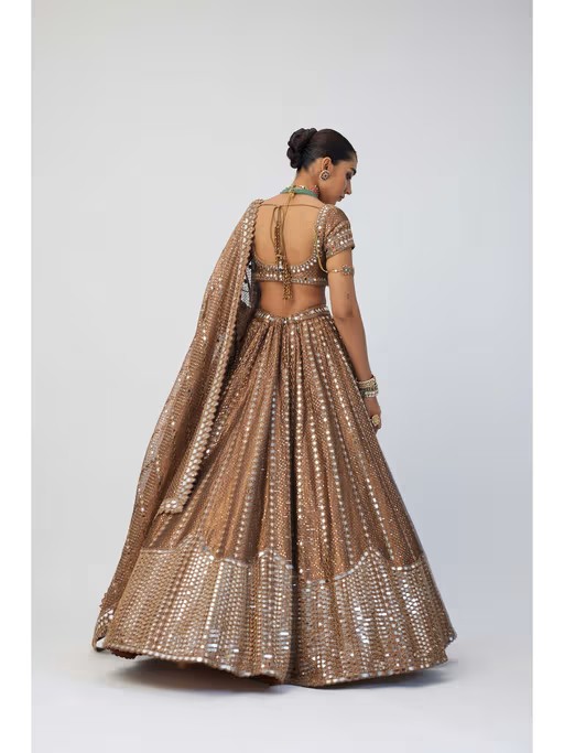 Copper Shimmer Organza Lehenga And Dupatta Clubbed With Real Hand Cut Mirror Embroidered Blouse