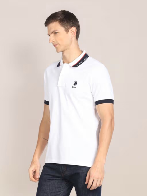 Step into the world of effortless style with this white polo t-shirt from U.S. POLO ASSN. Crafted from high-quality cotton, this polo t-shirt features half sleeves, a collar neck, button fly closure and a solid pattern. Pair it with denim and comfy shoes to complete the ensemble.