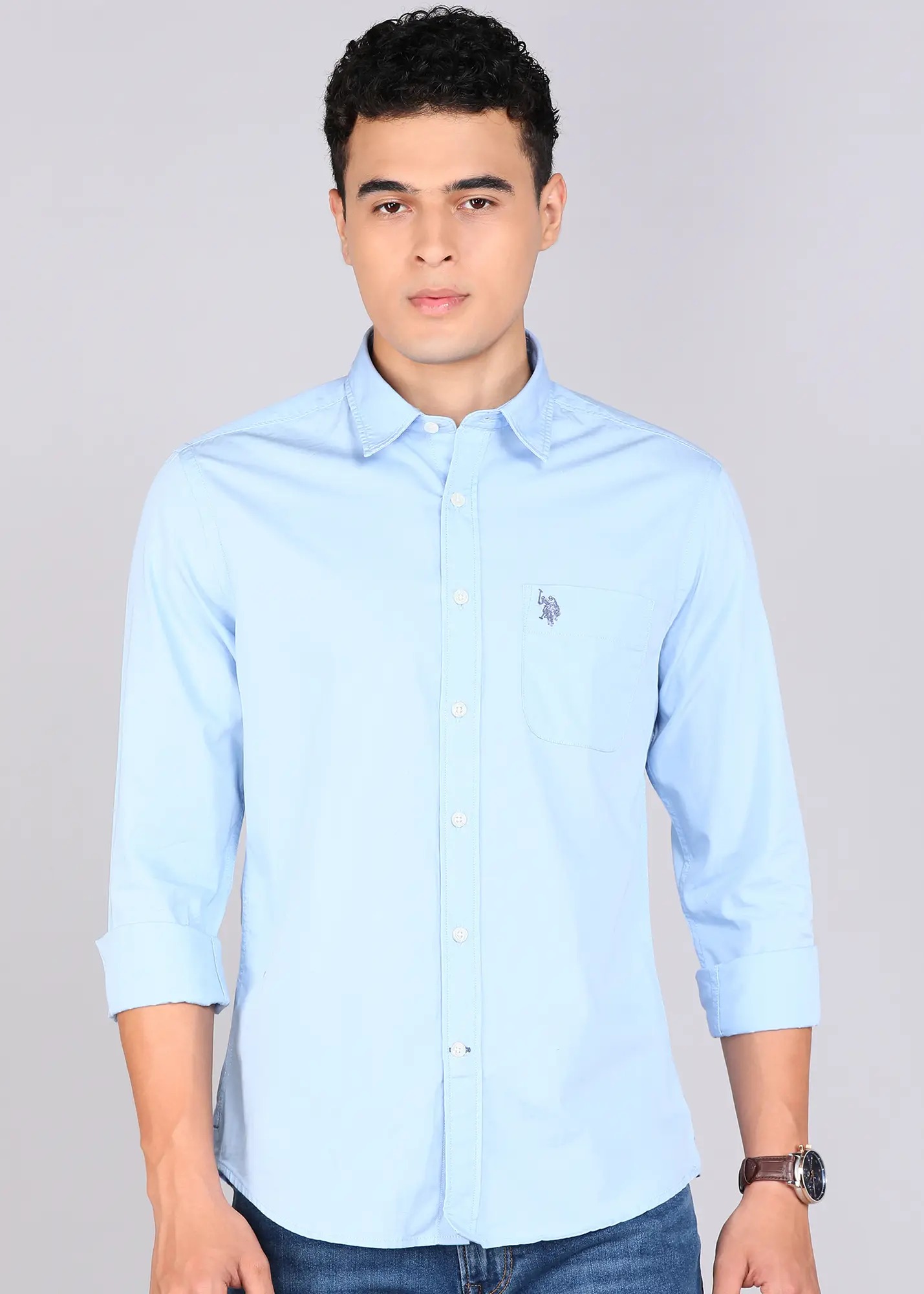 Men Regular Fit Solid Cut Away Collar Casual Shirt
