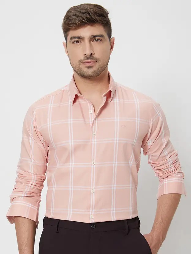 Men Slim Fit Checkered Spread Collar Formal Shirt