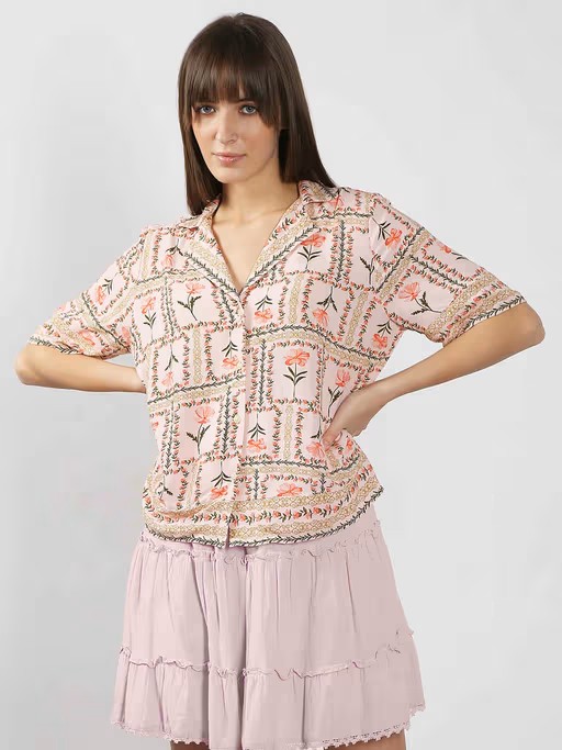 Effortlessly Chic, This Floral-Printed Shirt Features A Classic Notched Collar, A Front Button-Down Placket, and Breezy 3/4 Sleeves. Designed In A Relaxed Fit That Falls Below The Waist, It's Perfect for All-Day Comfort with A Touch Of Elegance.