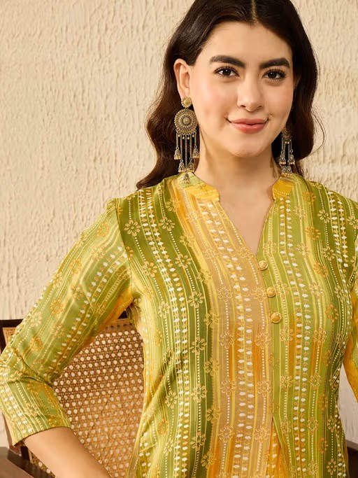 Women Green Rayon Blend Floral Straight Tunic