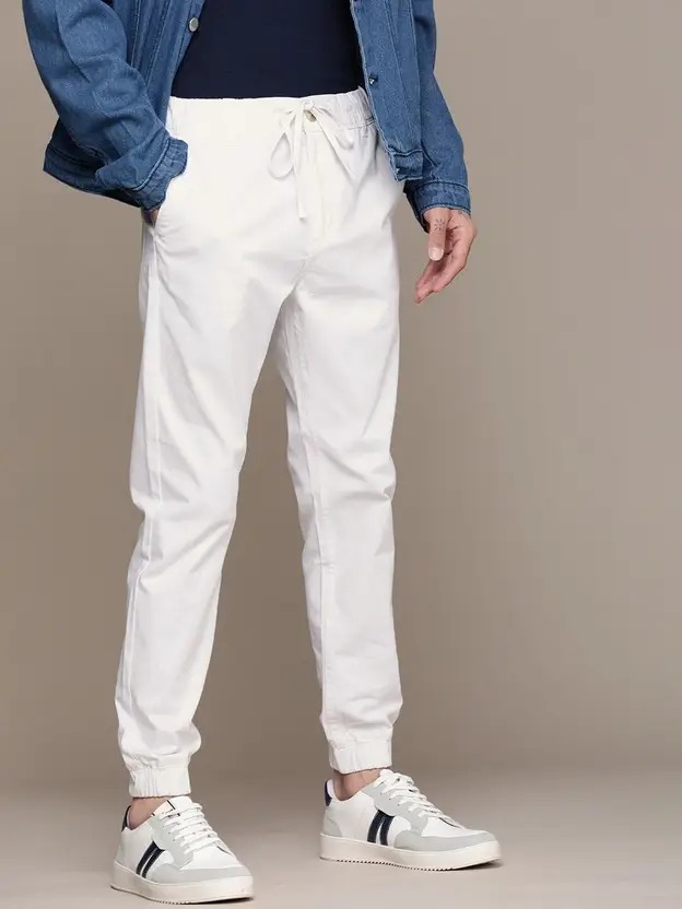 Men Regular Fit White Cotton Blend Trousers