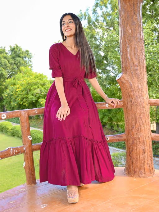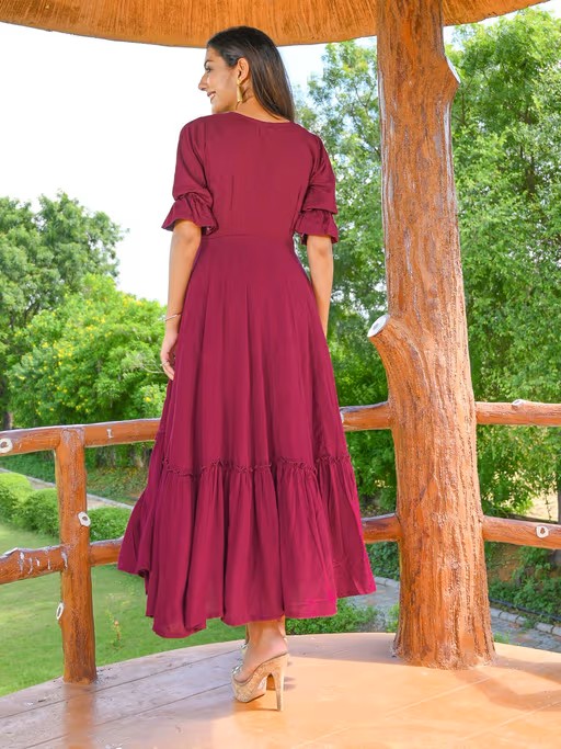 Burgundy Slub Flared Dress