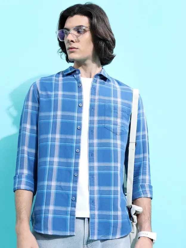 Men Slim Fit Checkered Spread Collar Casual Shirt