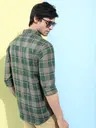 Men Slim Fit Checkered Cut Away Collar Casual Shirt