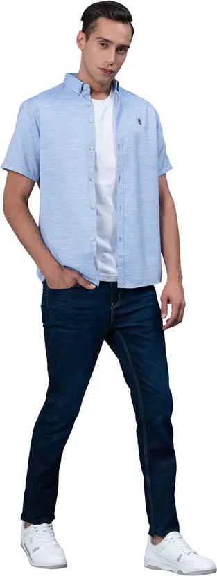 Men Regular Fit Self Design Button Down Collar Casual Shirt