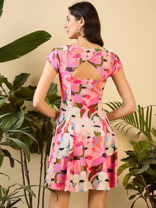 Garner all the attention in this multi-color dress from Mabish By Sonal Jain. Crafted from polyester, this stylish dress features cap sleeves and a square neck. Team it with a pair of heels and minimal jewellery.