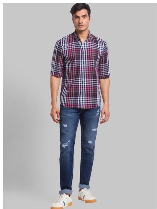 Multicolouredchecked opaque casual shirt ,has a spread collar, button placket, 1 patch pocket, long regular sleeves, curved hem