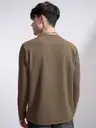 Men Self Design Round Neck Cotton Blend Brown T-Shirt