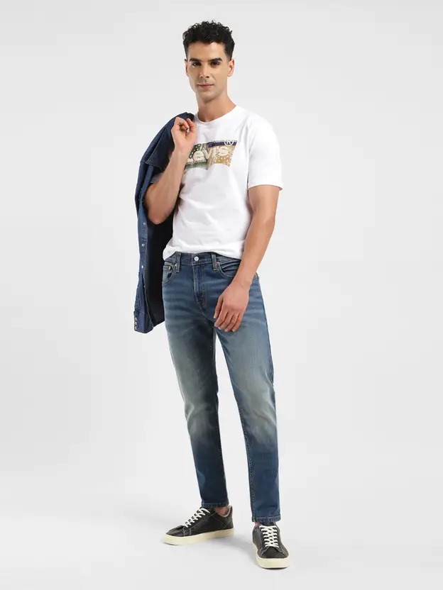 Men Tapered Fit Mid Rise Blue Jeans