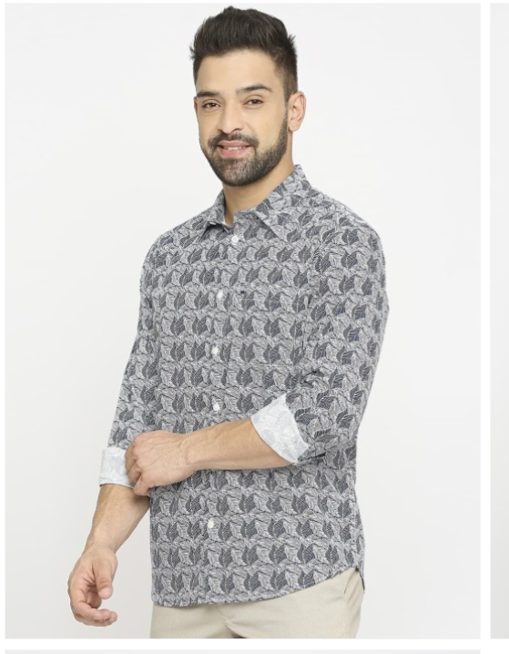 Blue abstract printed opaque Casual shirt ,has a spread collar, button placket, 1 patch pocket, long regular sleeves, curved hem