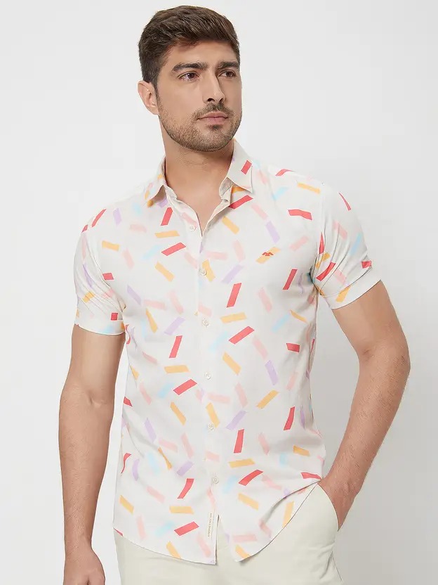Men Slim Fit Printed Spread Collar Casual Shirt