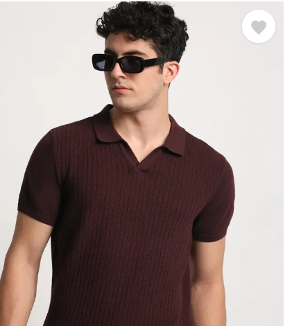Men Maroon Striped Regular Fit Polo Collar T-shirt