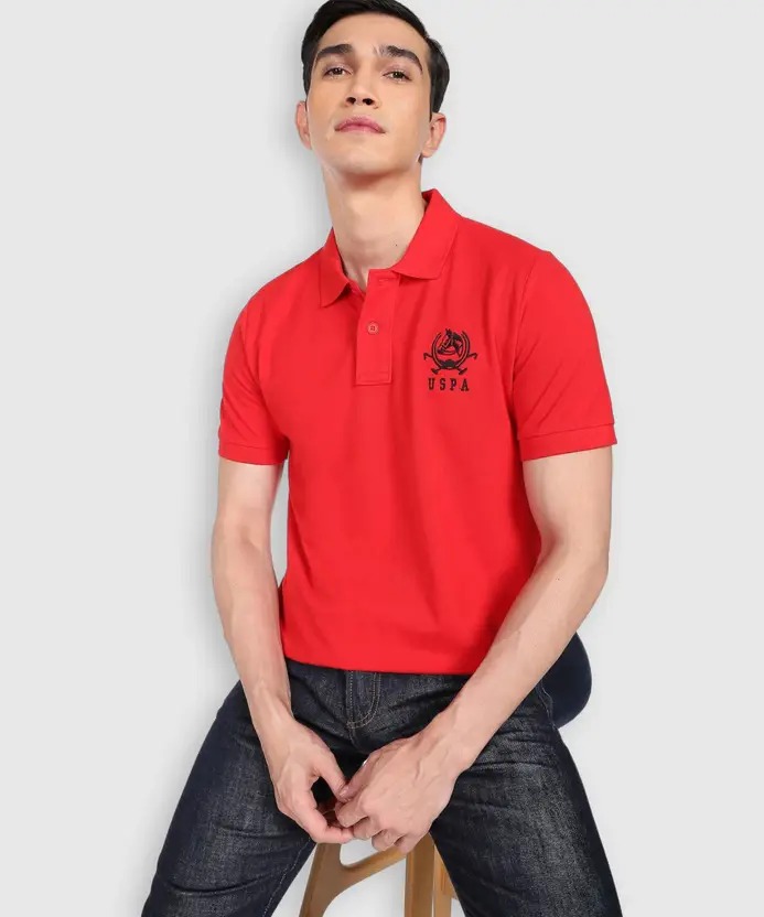 Men Solid Polo Neck Cotton Blend Red T-Shirt