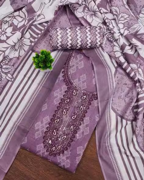 Package contains: 1 topwear fabric, 1 bottomwear fabric, 1 dupatta