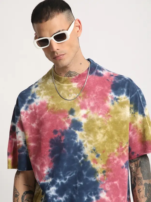 Men Multi Tie and Dye Oversized Fit Round Neck T-shirt