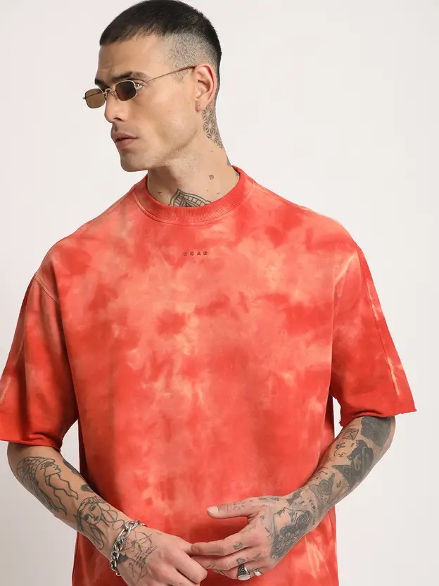 Men Orange Tie and Dye Oversized Fit Round Neck T-shirt