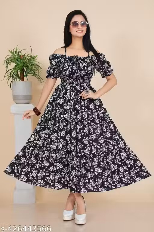 Trendy western wear long frock for girls and women, party wear, stylish wear, birthday wear, festive wear, comfortable wear for women, better quality at low price.