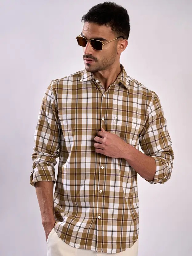 Men Slim Fit Checkered Spread Collar Casual Shirt