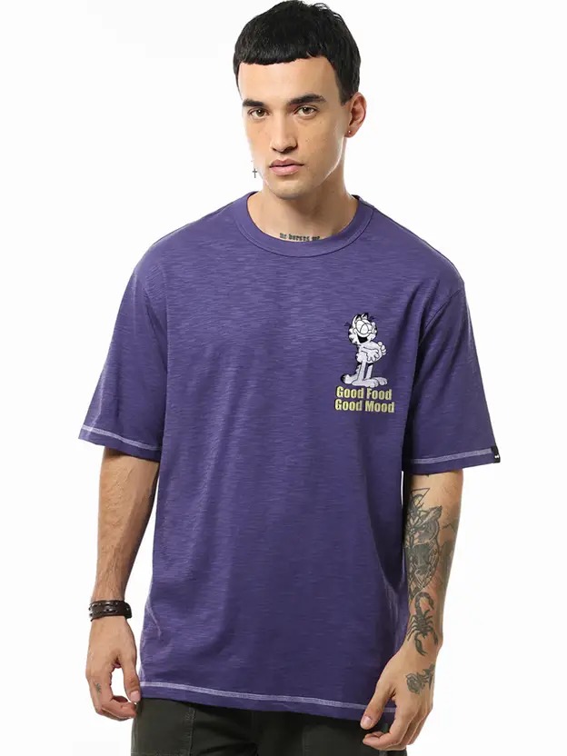 Men Graphic Print Round Neck Pure Cotton Blue T-Shirt