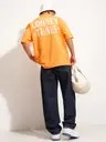 Men Printed Round Neck Cotton Blend Orange T-Shirt