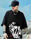 Men Printed, Typography Round Neck Cotton Blend Black T-Shirt