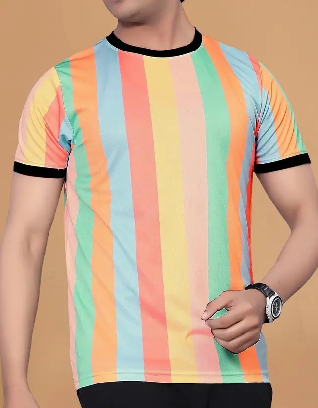 Men Printed Round Neck Polyester Multicolor T-Shirt