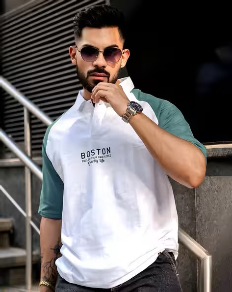 Men Typographic Print Regular Fit Polo T-Shirt