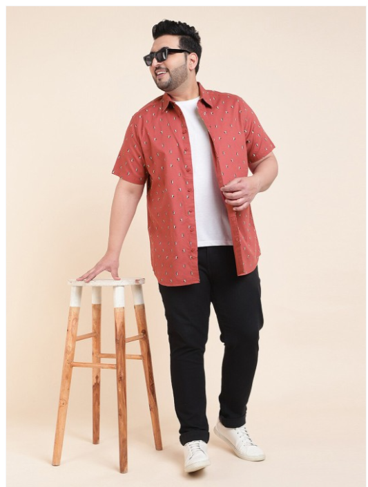 Rust conversational printed opaque Casual shirt ,has a spread collar, button placket, na pocket, short regular sleeves, curved hem