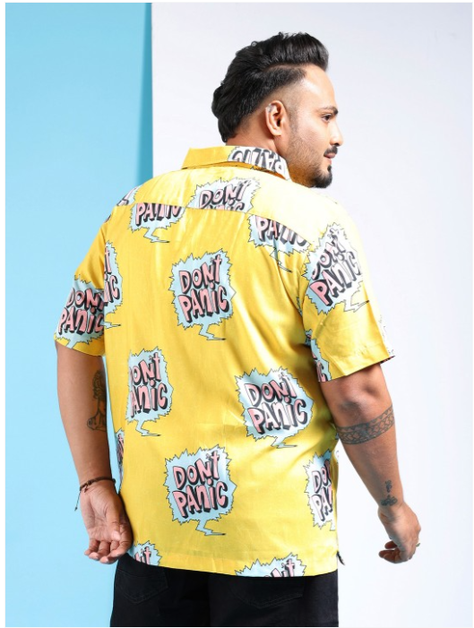 Yellow typography printed opaque casual shirt ,has a spread collar, button placket, short regular sleeves, curved hem