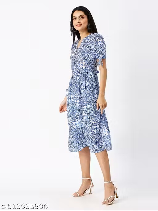 Name : Noia Women V-Neck Blue and White Short Sleeve Midi Dress