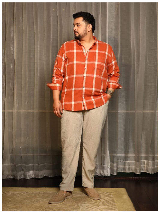 Orange and white other checks checked opaque casual shirt ,has a spread collar, button placket, long regular sleeves, curved hem