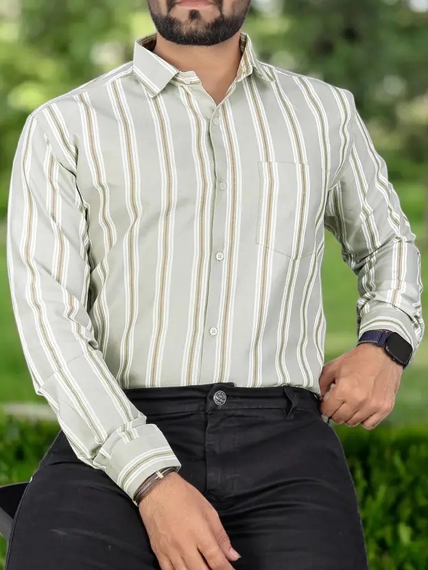 Men Regular Fit Striped Spread Collar Formal Shirt