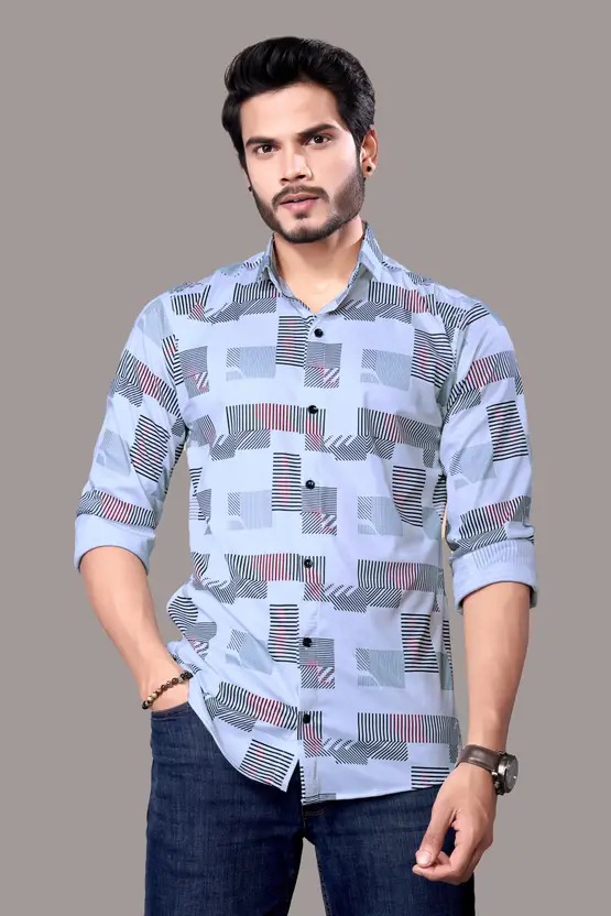 Men Regular Fit Floral Print Slim Collar Casual Shirt