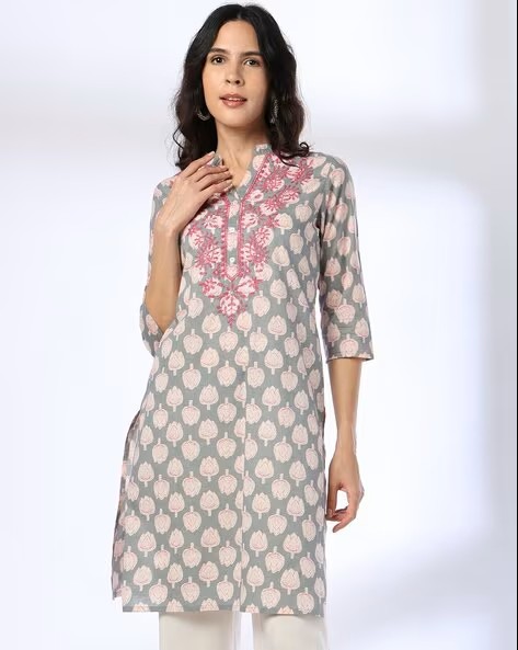 Women Floral Print Cotton Straight Kurta