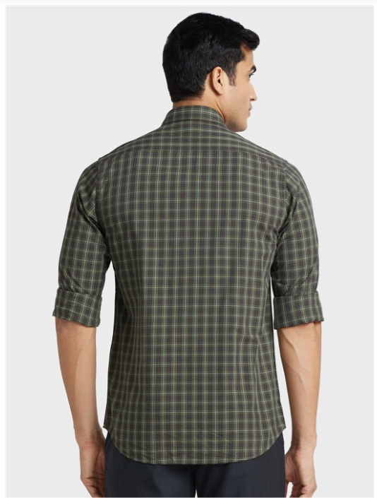 Green tartan checks checked opaque casual shirt ,has a spread collar, button placket, 1 pocket, long regular sleeves, curved hem