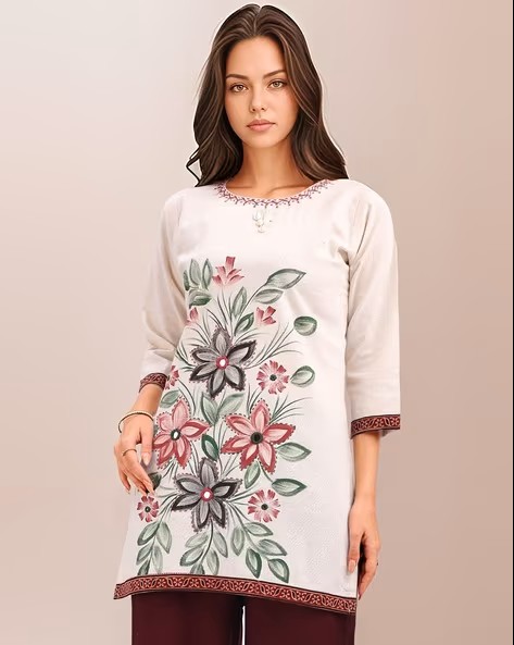 Features detailed hand embroidery enhancing the floral design for a rich ethnic charm.