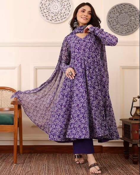 Women Floral Print Flared Kurta Set