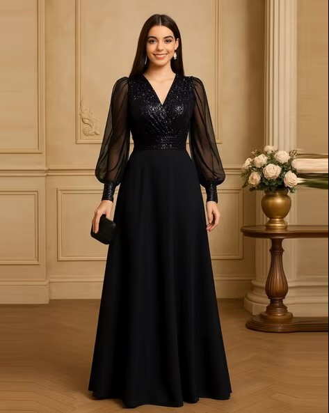 Women Fit & Flare Dress with Puff Sleeves