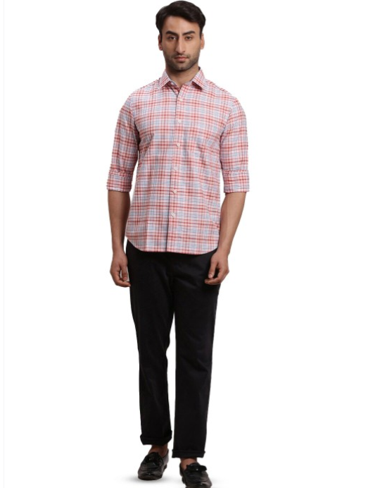 Red tartan checks opaque Casual shirt ,has a spread collar, button placket, 1 pocket, long regular sleeves, curved hem