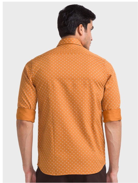Brown micro ditsy printed opaque Casual shirt ,has a spread collar, button placket, na pocket, long regular sleeves, curved hem