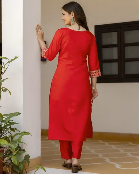 Women Embroidered Straight Kurta Set